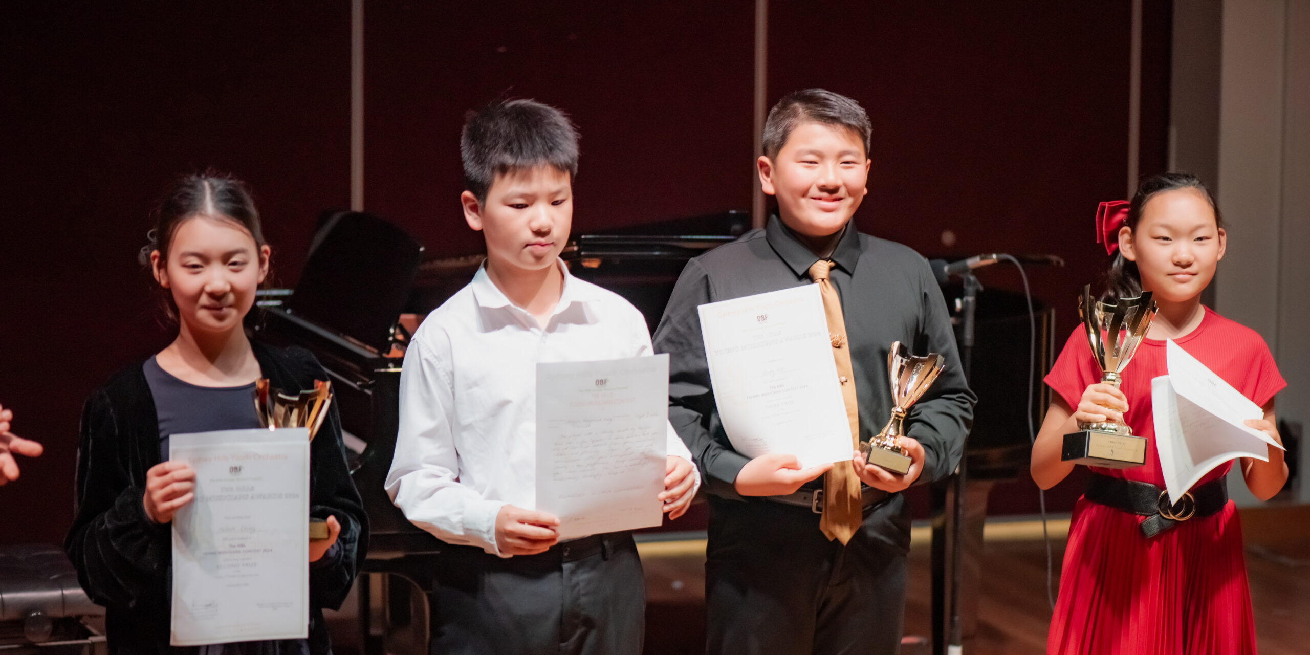 12 years of age and under: 1st Prize – Chloe Lee (Violin) 2nd Prize – Isabella Leung (Violin) 3rd Prize – Henry Lin (Horn) Special Prize – Haojun Raymond Kong (Bassoon)