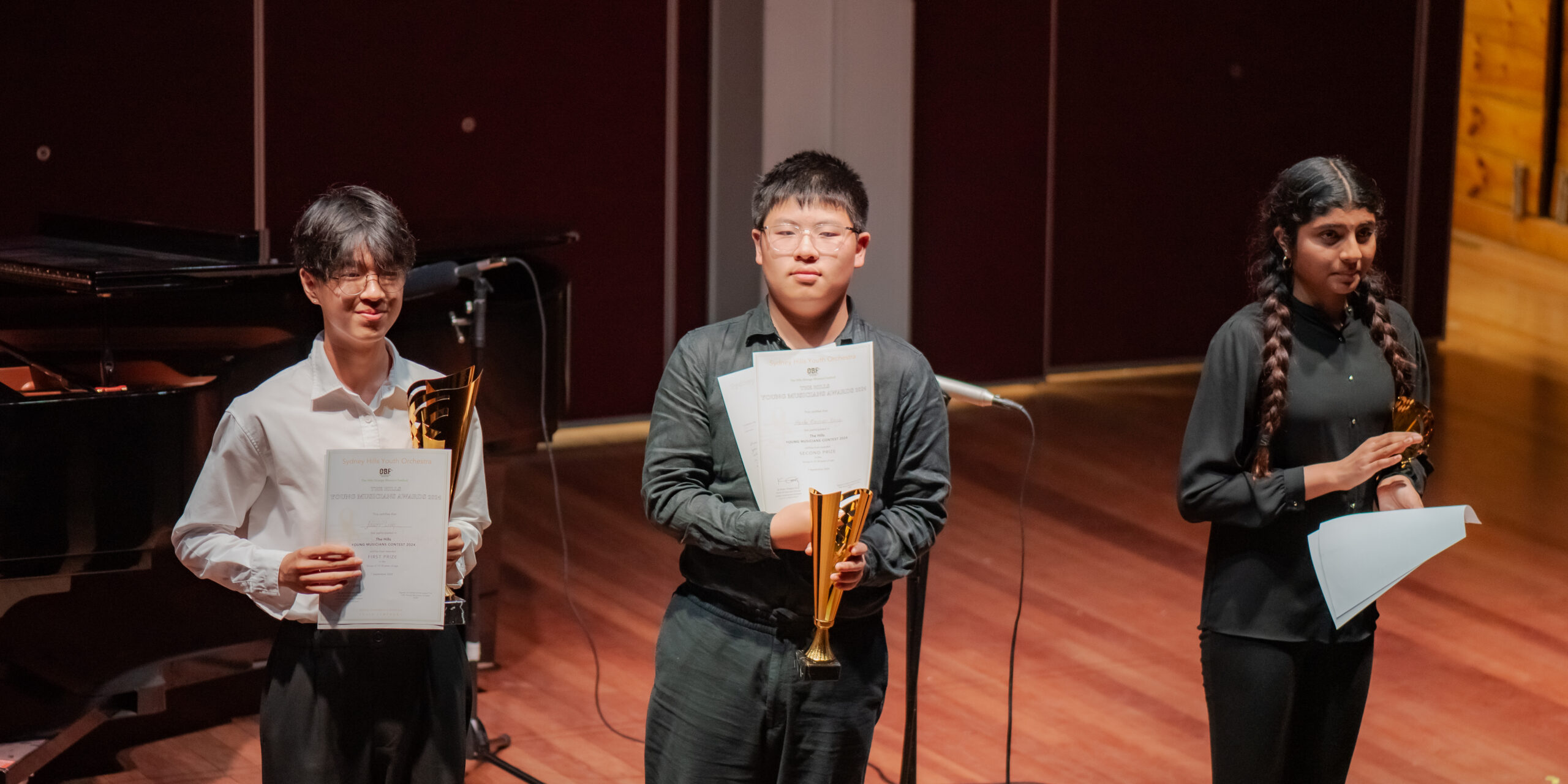 The prize winners of the Hills Young Musicians Contest 2023 Year 11 to 14 years of age 1st Prize – Clara Kwon (Cello) 2nd Prize – Xinluyi Zhang (Flute) 3rd Prize – Grace Lee (French Horn)